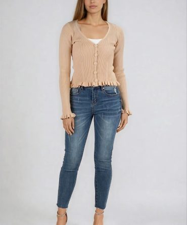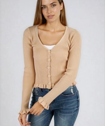 Sleek Comfort Ribbed Button Up Cardigan – Almond