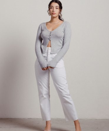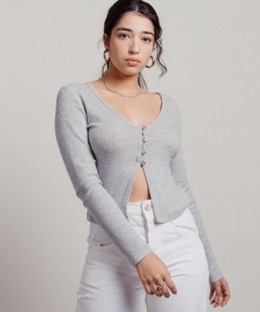 Paola Ribbed Cardigan – Grey