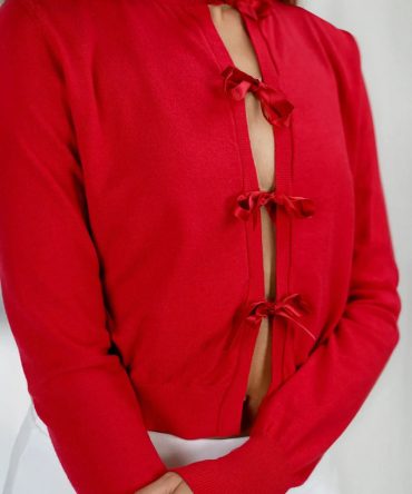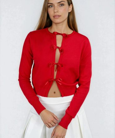Light Snuggle Long Sleeve Bow Cardigan – Red
