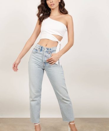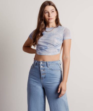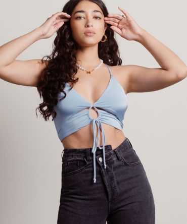 Breeze Babe Asymmetric Crop Top – Light Blue