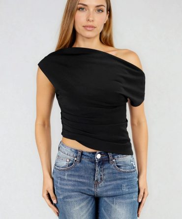 Simply Posh One Shoulder Top – Black