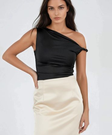 Softly Yours One Shoulder Top – Black