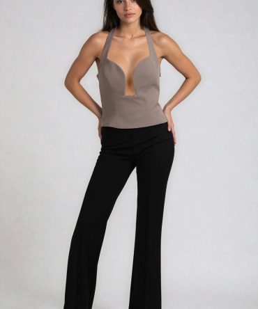 Scene Stealer Peplum Halter Top – Dusty Mocha