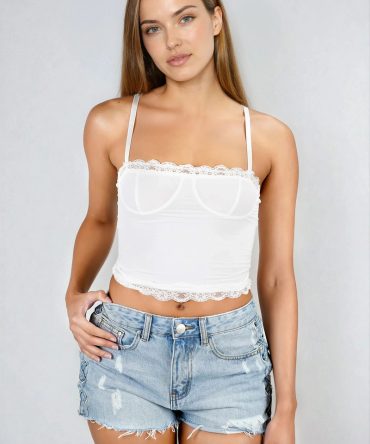 Fun Breeze Lace Cami Crop Top – Ivory