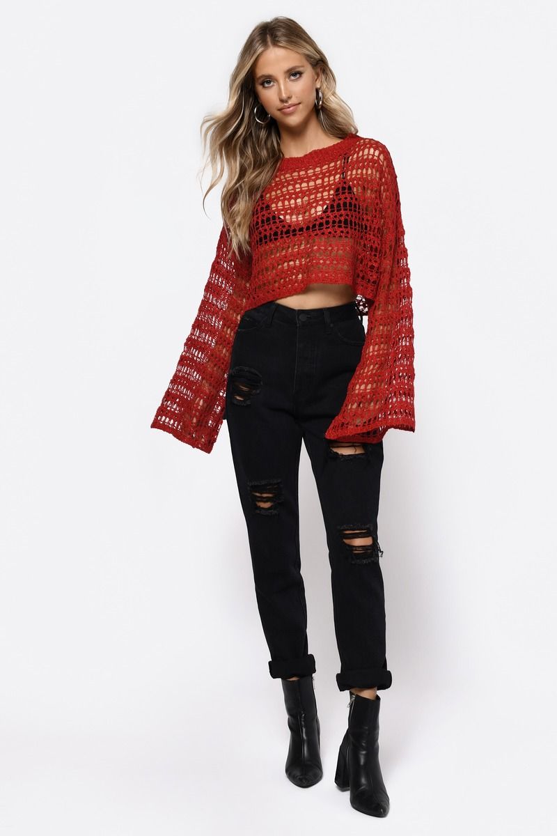 Embrace the boho vibes with the Lost Love Crochet Sweater in Red! This oversized beauty features intricate crochet knit detail, a cozy crew neckline, and slouchy sleeves for that perfect laid-back look. Pair it with a sexy bralette and a high-waisted mini skirt, and you’ve got a playful, yet chic outfit that’s perfect for any weekend getaway or festival.