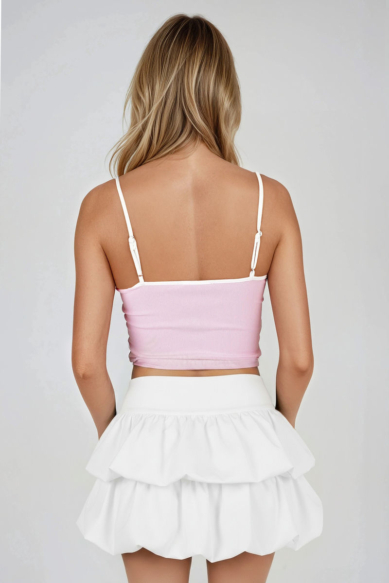 Playful flirty energy starts the vibe with the Sweet Tease Cutout Bow Cami Top in White, designed for nights out, brunch dates, and rooftop hangs. The sweet front cutout with bow detail adds just the right tease, while slim adjustable straps and a soft ribbed fabric keep the fit comfy and flattering. It hugs your shape without feeling tight, making it easy to dress up with heels or keep casual with denim. One top, endless main-character moments.