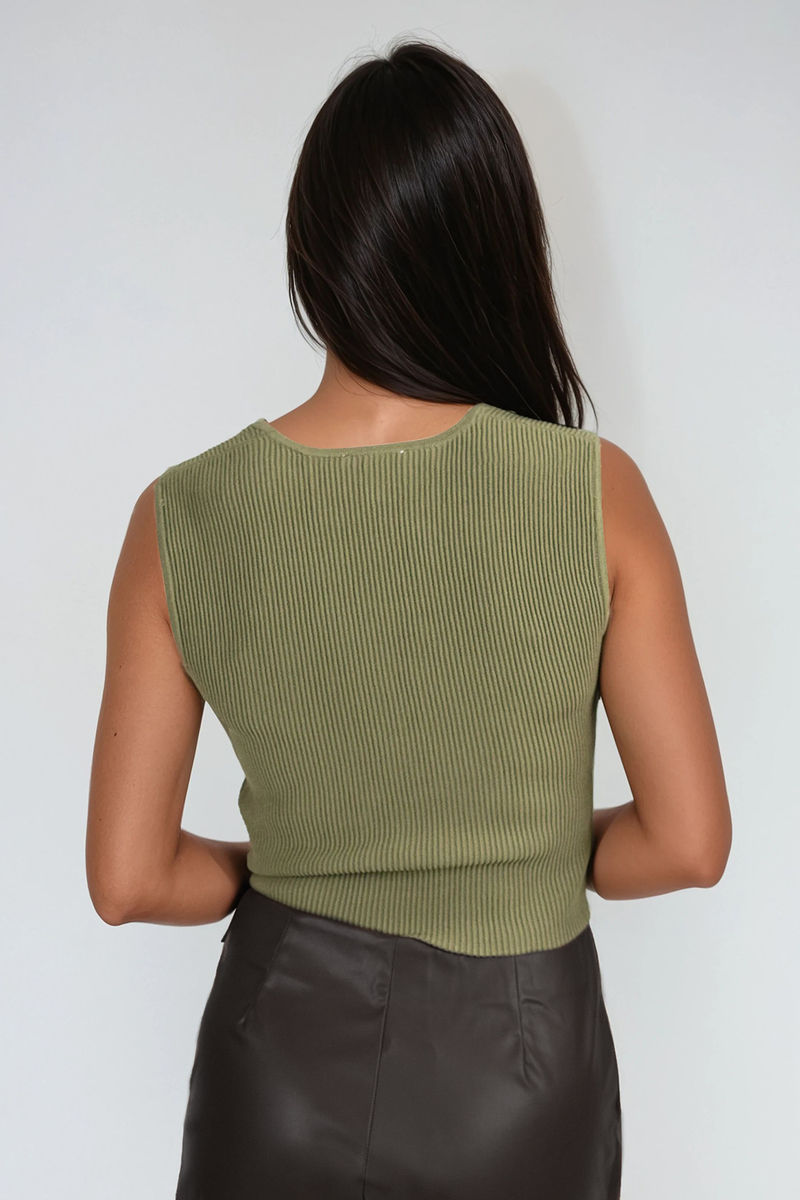 Keep it sleek and effortless in the Take the Leap Ribbed Tank Top in Olive. Designed with a flattering square neckline, sleeveless cut, and cropped length, this solid knit piece is the ultimate wardrobe essential. The ribbed texture adds a touch of edge while the versatile fit makes it perfect for layering or rocking solo. Pair with denim, skirts, or shorts—this top is made for every bold move.