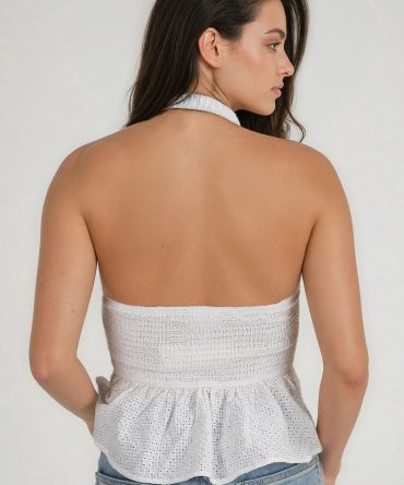 Catch the Breeze Eyelet Halter Top – Ivory