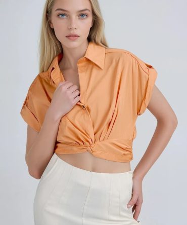 Citrus Charm Collared Crop Top – Orange